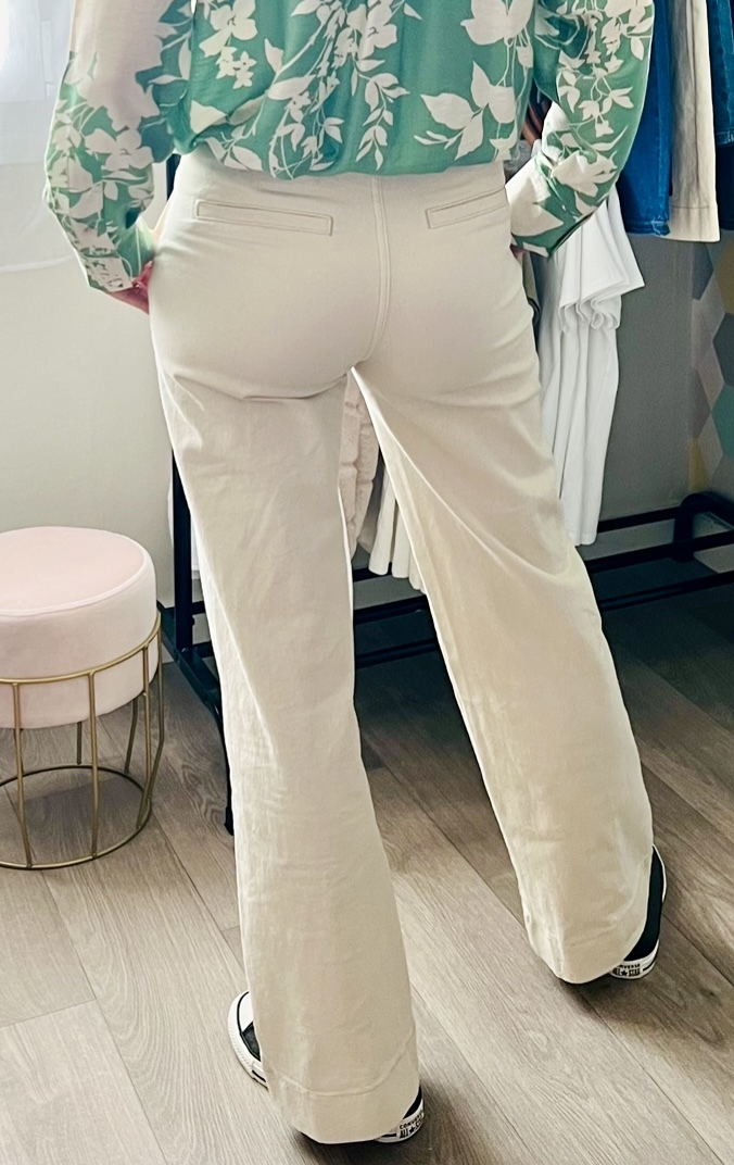 Le jean Candine est un jean wide, il est évasé des hanches jusqu’aux chevilles.